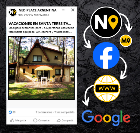 Podras crear publicaciones en Nediplace en segundos y compartirlas en nuestras redes sociales de Facebook automaticamente con un solo click