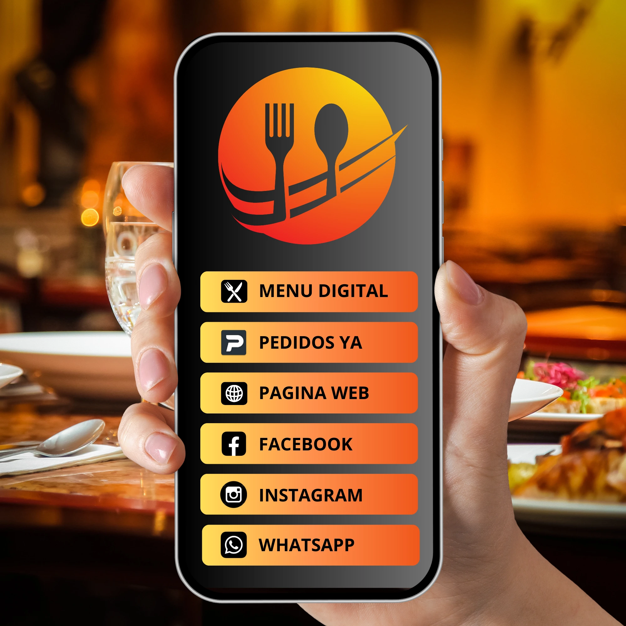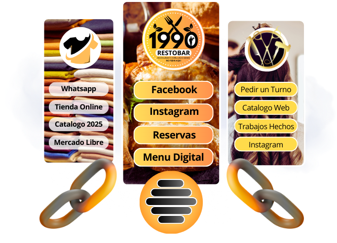 Podes tener todos los enlaces utiles para tus clientes, redes sociales y para quienes desees que ingresen a ver la informacion, donde podras tener tus botonera con accesos a Menu Digital, Pedidos Ya, Pagina Web, Facebook, Instagra, Whatsapp directo, y cualquier otra red o acceso que necesites tener aqui.